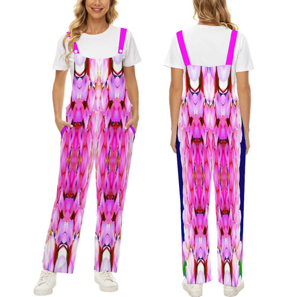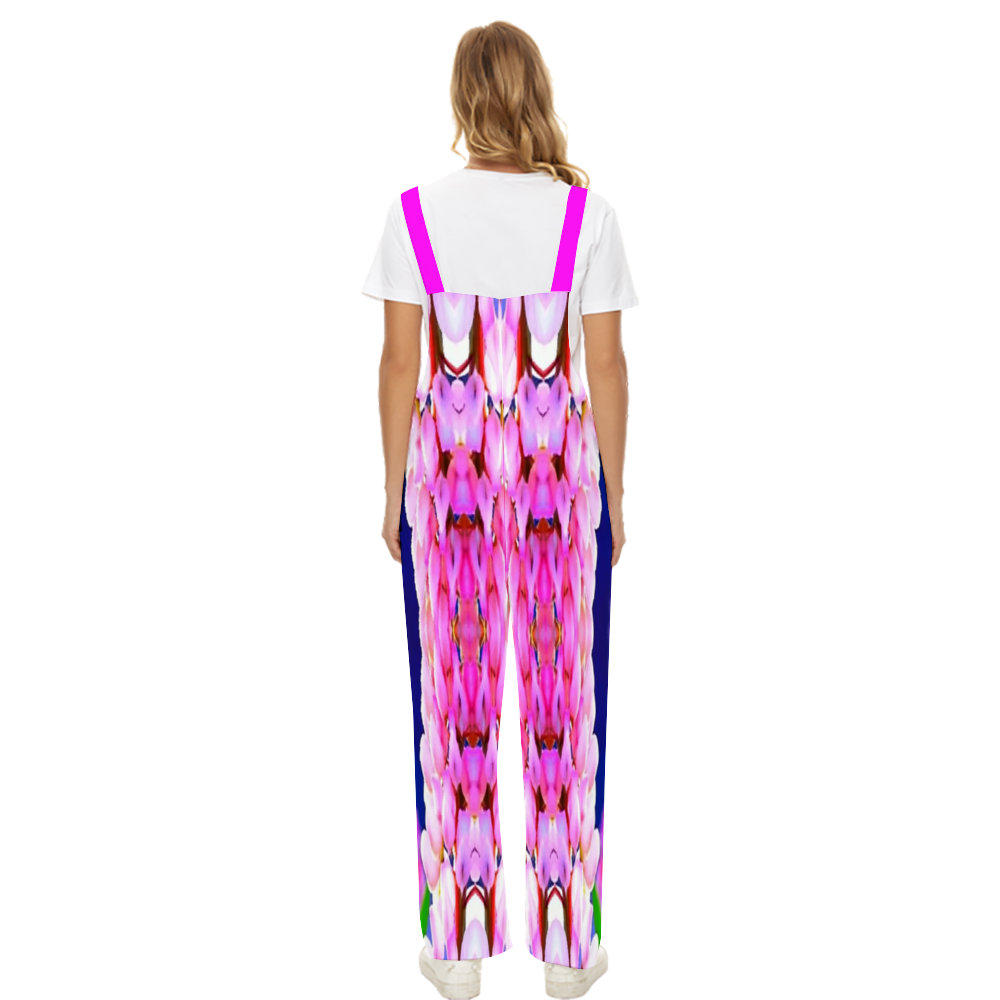 The suspender pants are for women of fashionable design with 2 side pockets, sleeveless, wide leg, ankle length, relaxed fit, lightweight, and comfortable.