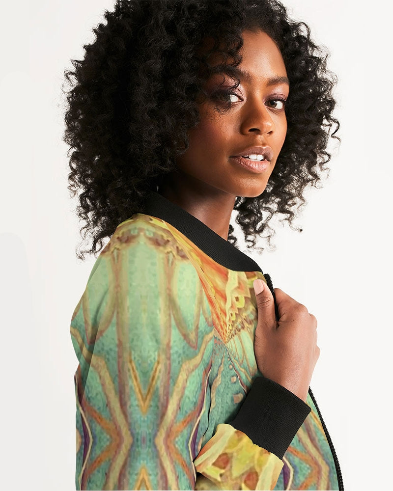 Hand-cut and crafted with care, your custom designed Women's Bomber Jacket will set off any look! Its lightweight, airy fabric is lined with the perfect amount of insulation for the chillier months making this a great year round go-to.