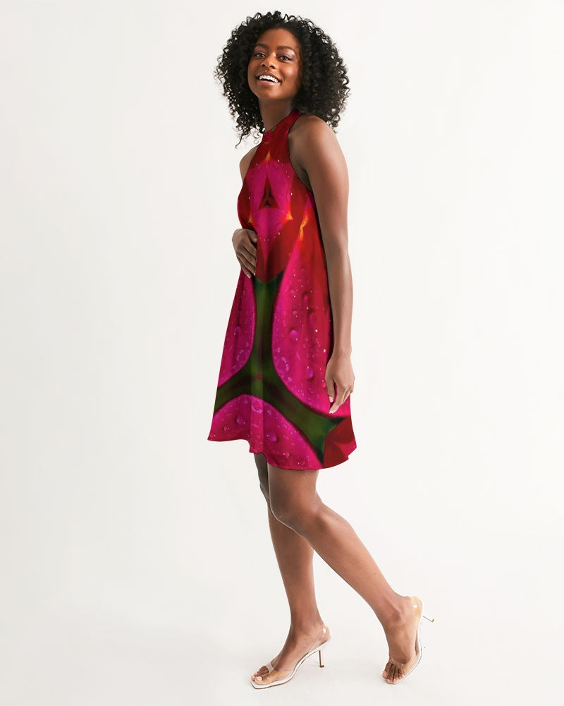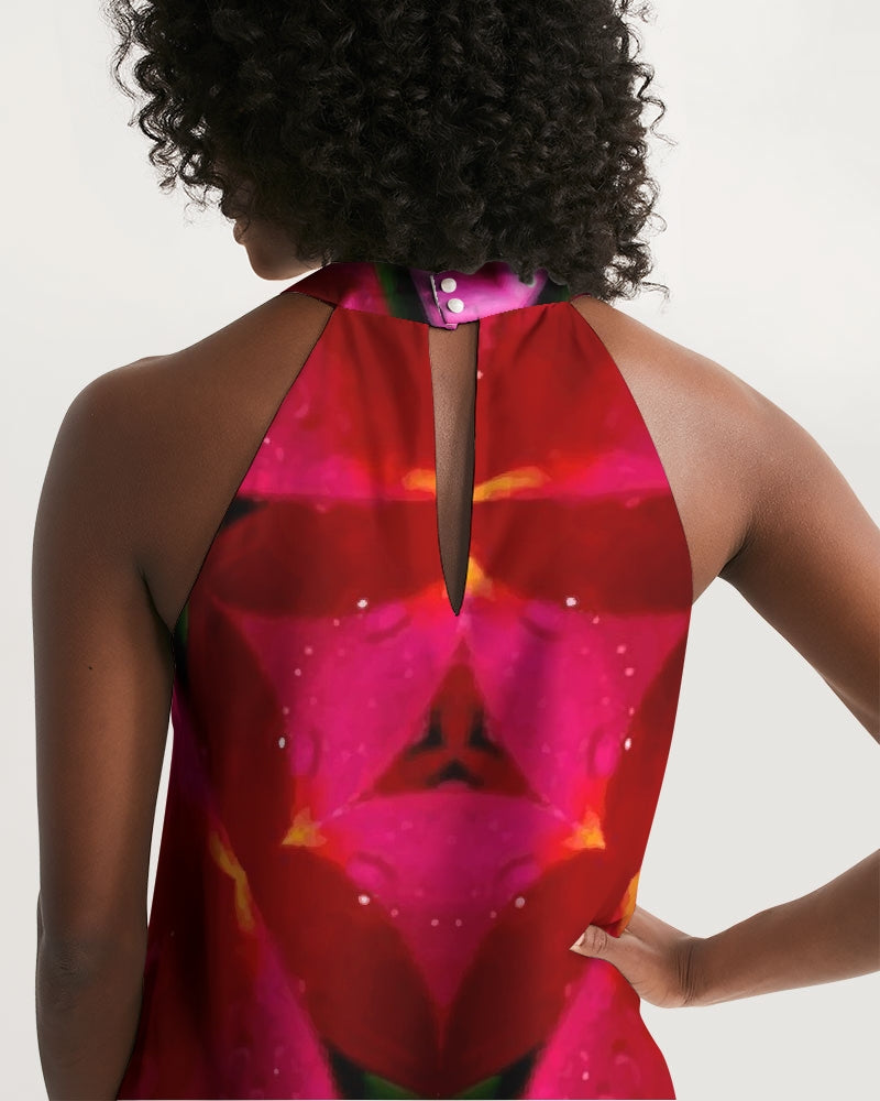 About The ArtRed Blush 1 tbd Product DetailsElegant yet simple, your personalized design will look phenomenal in our Women's Halter Dress. Handmade from polyester chiffon material and fastened in the back with two chic pearl buttons.